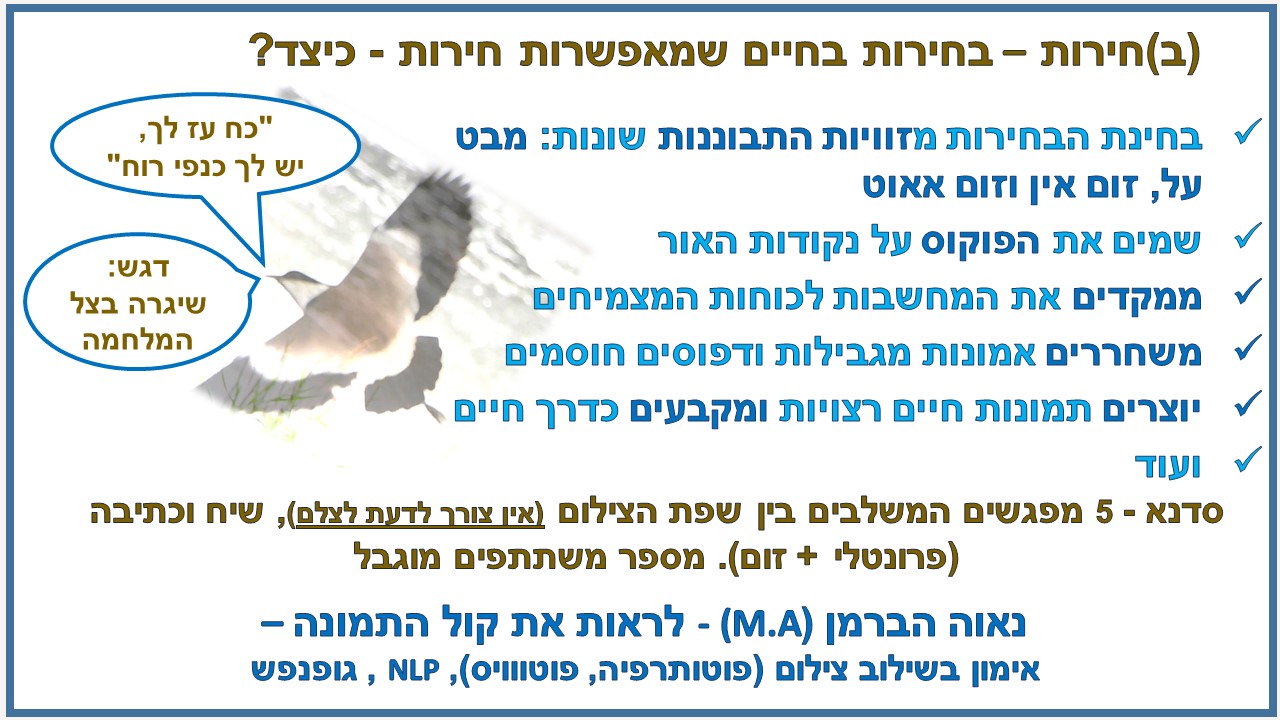 - איך בוחרים לטובתנו, ממקום המאפשר חירות אישית וחיים מיטביים – בדגש על התקופה הזו?